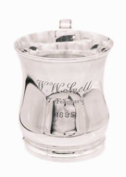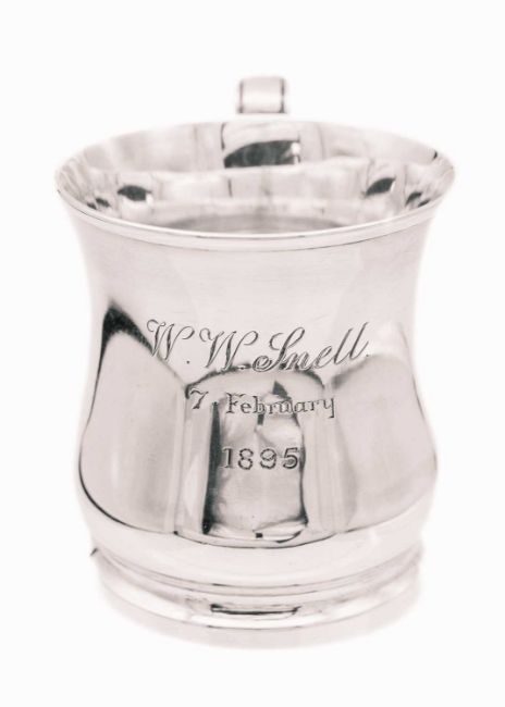 Of baluster form, engraved dedication, London 1893, height 7cm, 3 oz.