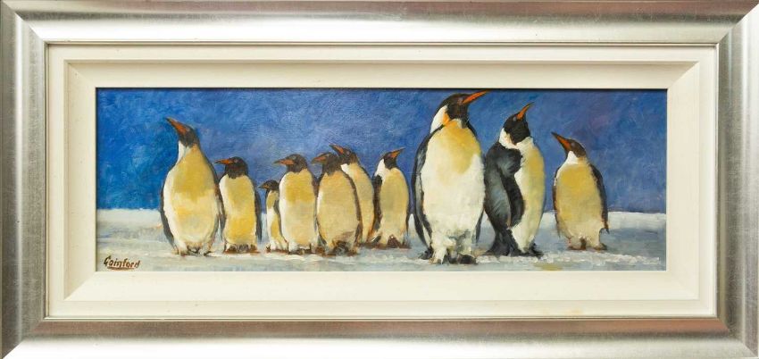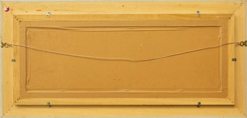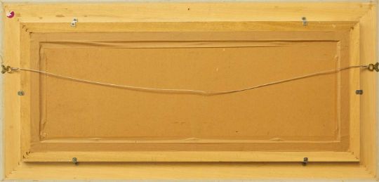 Oil on board, signed, 31cm x 92cm, 57cm x 119cm framed.