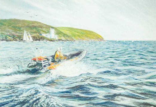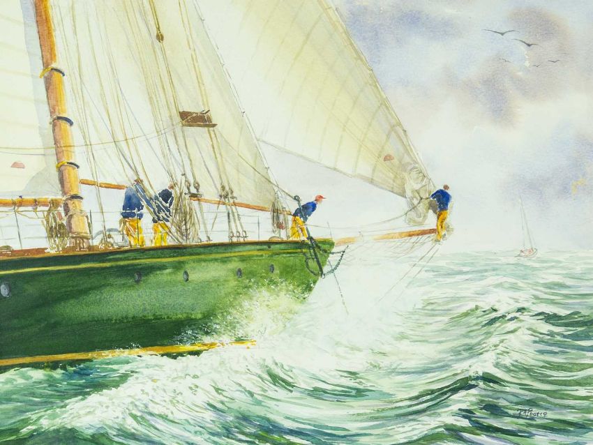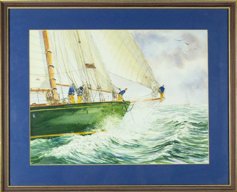 Pastel on card, signed, artist's label verso, 38cm x 53cm, 58cm x 74cm framed; Getting Under Sail - Atlantic Challenge Leaving Falmouth for IOW, watercolour, signed, 29cm x 38.5cm, 42cm x 52cm framed.