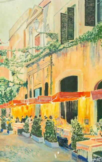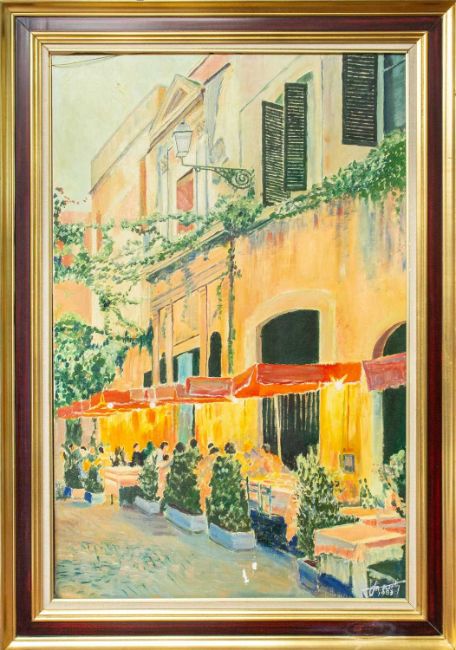 Oil on canvas, signed and dated 1983, 91.5cm x 59.5cm, 108cm x 76cm framed.