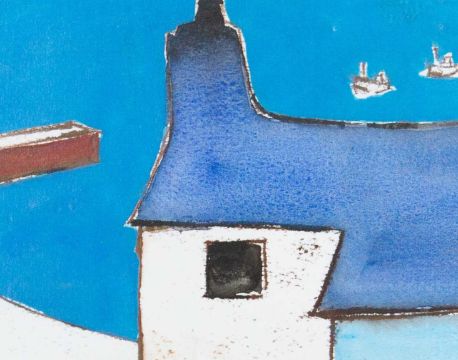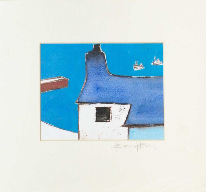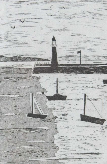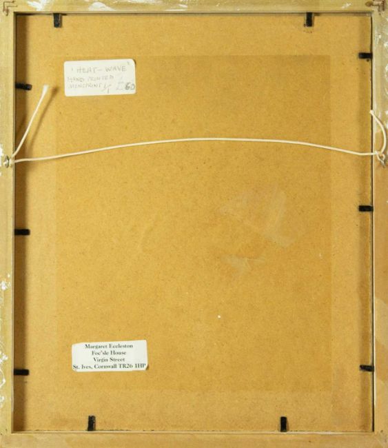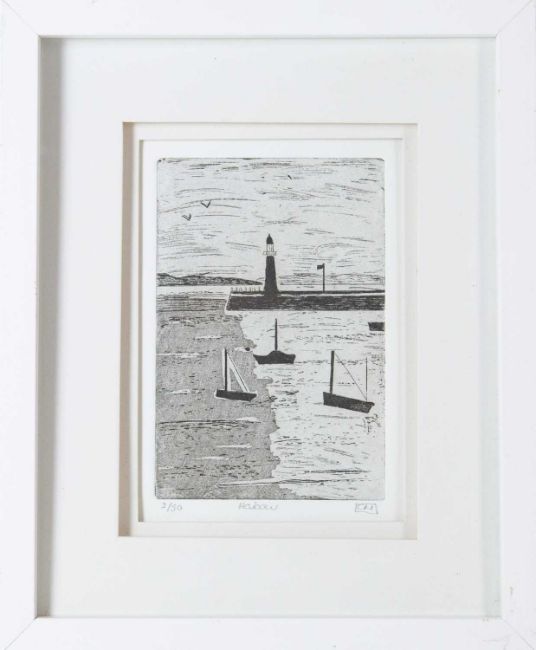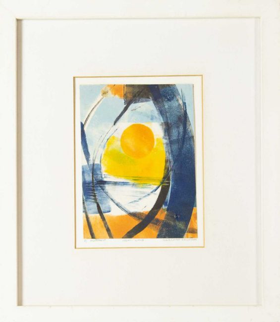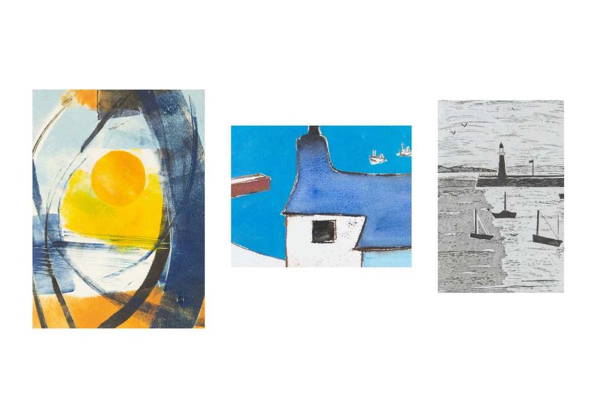 Hand-printed monoprint, signed and titled, image size 15cm x 11cm, 31.5cm x 27.5cm framed; together with a Barrie Bray print , Margaret Ecclestone and an etching, Harbour, edition 2/50, initialled CM, plate size 14cm x 10cm (3)