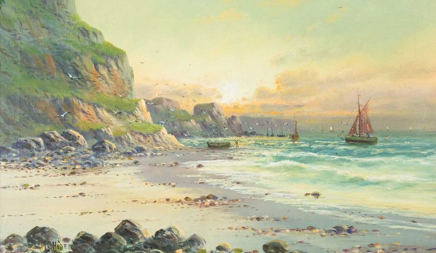 Oil on canvas, signed, titled indistinctly verso, 31cm x 51cm, framed 38cm x 59.5cm.