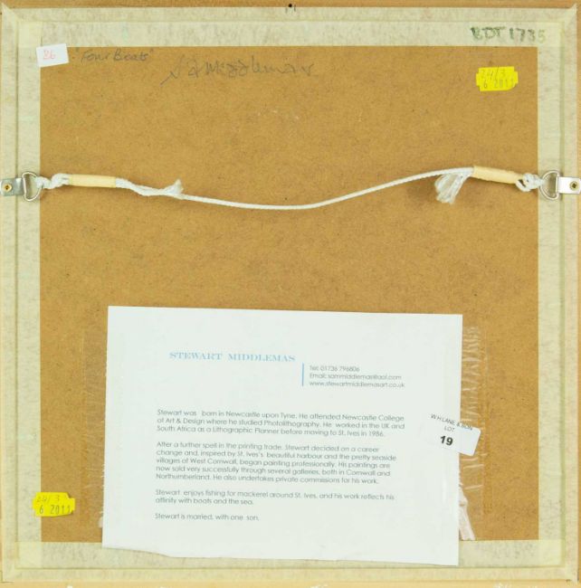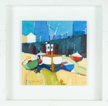 Oil on board, signed, titled and further signed verso, 20.5cm x 20.5cm, framed 35.5cm x 35.5cm.