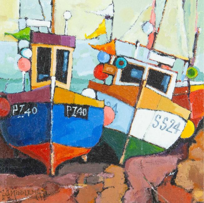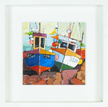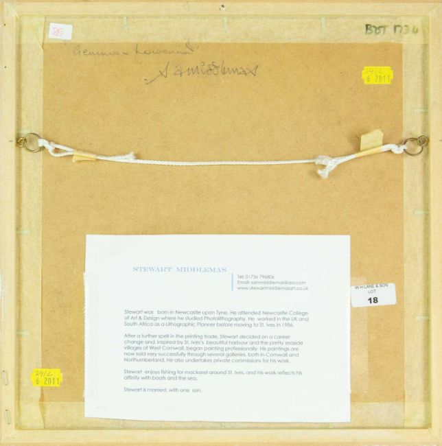 Oil on board, signed, titled and further signed verso, 20.5cm x 20.5cm, framed 35.5cm x 35.5cm.