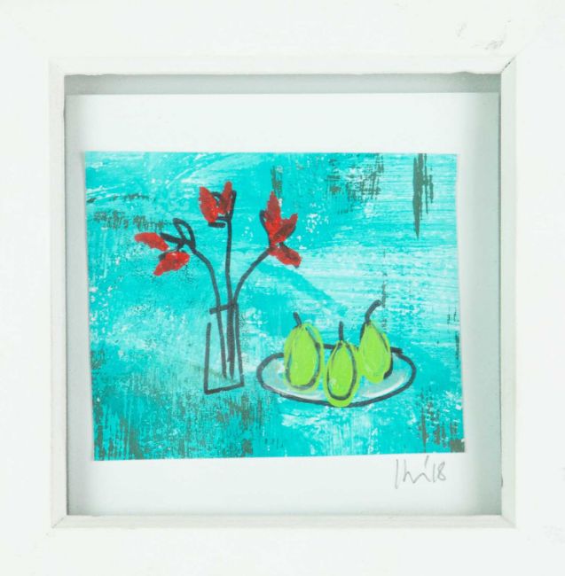 Oil on card, signed with initials and dated '18, image 9.5cm x 11.5cm, framed 18cm x 18cm.