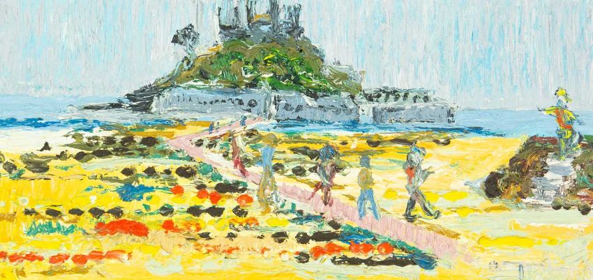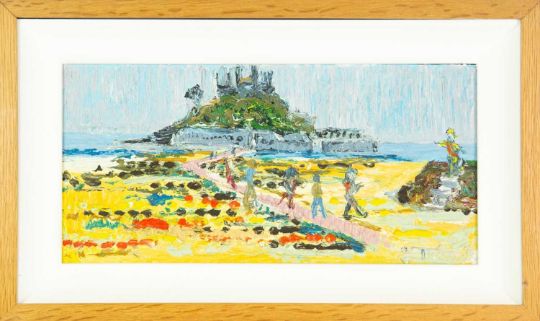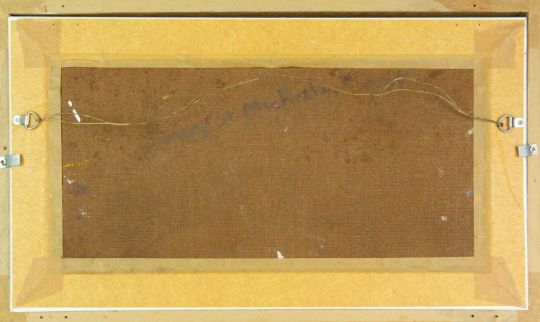 Acrylic on board, signed, titled verso, 22cm x 45cm, framed 33.5cm x 56cm.