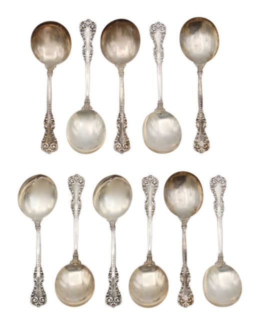 With scroll cast handles, stamped STERLING and with makers mark, total weight 402.4g.