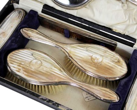 Birmingham 1924, with engine turned decoration, comprising four brushes, a hand mirror and comb.