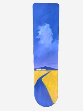 Finished size 1220 x 298 mm (+/- 4 mm). Each board is crafted from Okoume 7 ply hardwood 9mm thick and is sustainably sourced from Lloyds approved timber mills. It has terrific natural graining, figuring and colouring. The boards have undergone a steam bending cycle on what must be the oldest Cornish Electro steam being press still operating today. They are then finished using Yacht and Seaplane marine finish and white spirit which gives a good penetration without clogging the pores of the wood. Finally the boards have been safety edge rounded and hand-sanded – this opens up the grain better to provide a bond with the finishing medium of choice by our artists.