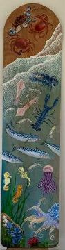 A charity auction in aid of Cornwall Hospice Care.  This new art project sees local Cornish artists take one of 41 wooden belly boards specially made for the project by Fyne Boat Kits of Kendal and Derek Thompson of Surf Classic Boards, and use their own inspiration and skills to turn these simple boards into desirable works of art.