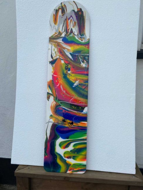 Finished size 1220 x 298 mm (+/- 4 mm). Each board is crafted from Okoume 7 ply hardwood 9mm thick and is sustainably sourced from Lloyds approved timber mills. It has terrific natural graining, figuring and colouring. The boards have undergone a steam bending cycle on what must be the oldest Cornish Electro steam being press still operating today. They are then finished using Yacht and Seaplane marine finish and white spirit which gives a good penetration without clogging the pores of the wood. Finally the boards have been safety edge rounded and hand-sanded – this opens up the grain better to provide a bond with the finishing medium of choice by our artists.
