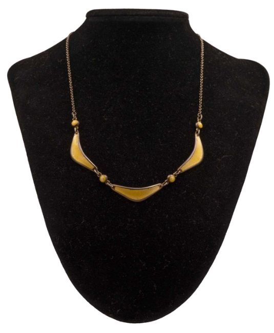 Three yellow guilloche enamel panels fitted on a 17.5" cable chain, stamped 835. The necklace is signed A.SCH. 925 S. Total weight 9.32g.